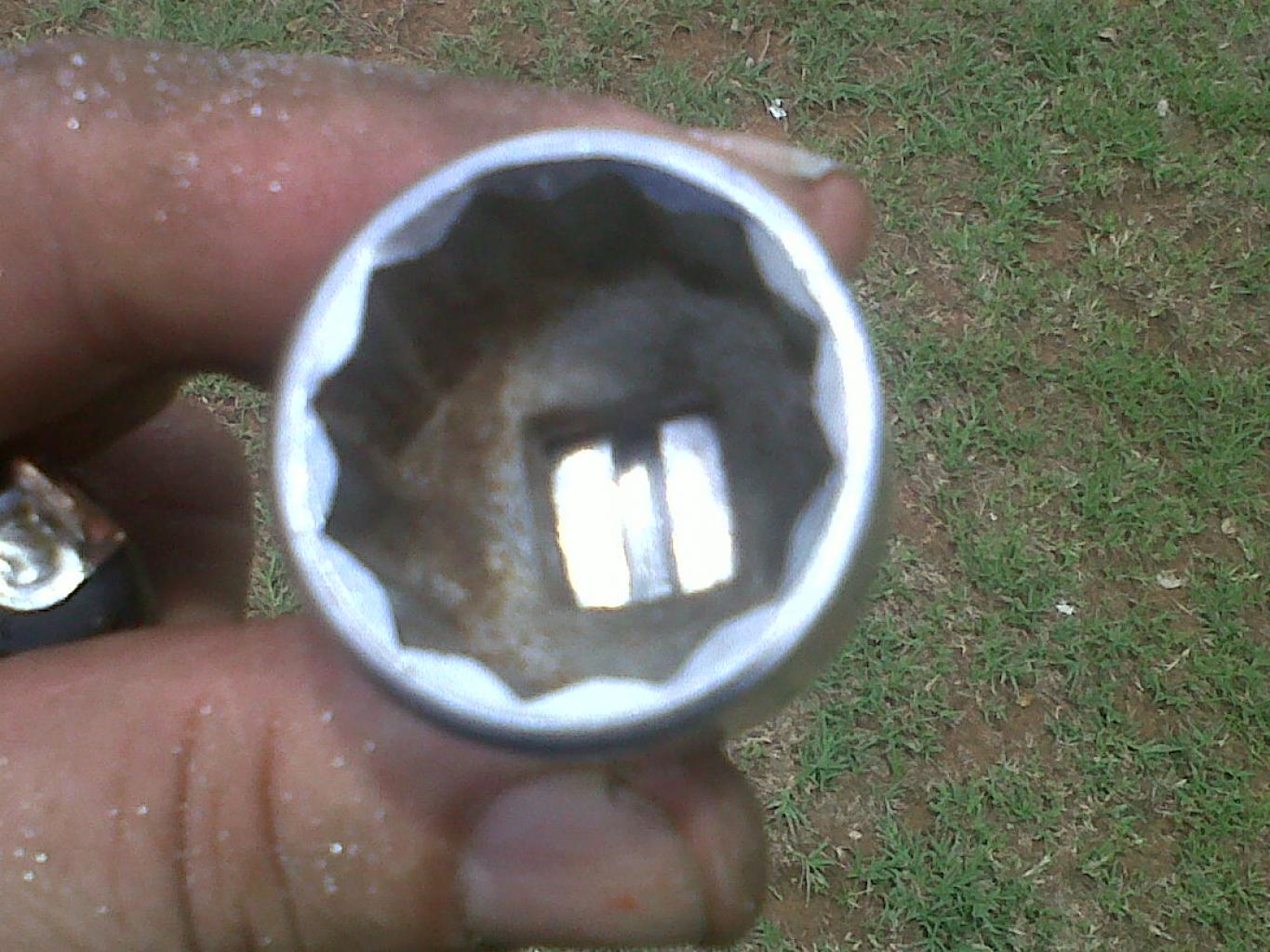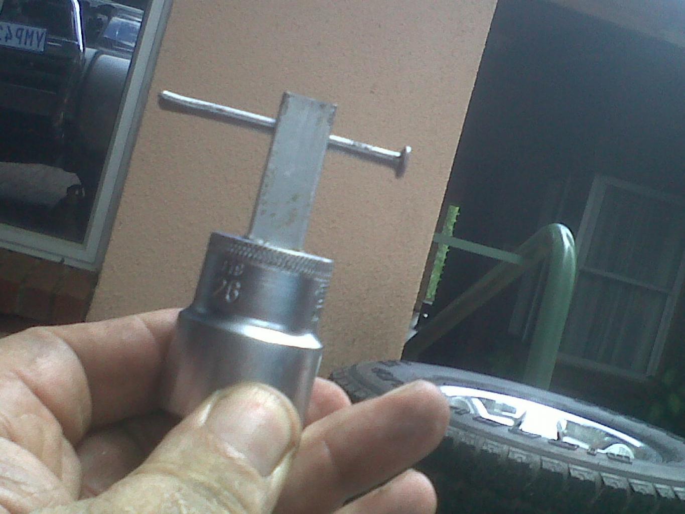 I then slotted the end of a 13mm aluminium square bar and hammered it into a 26mm (1/2 inch drive) socket.