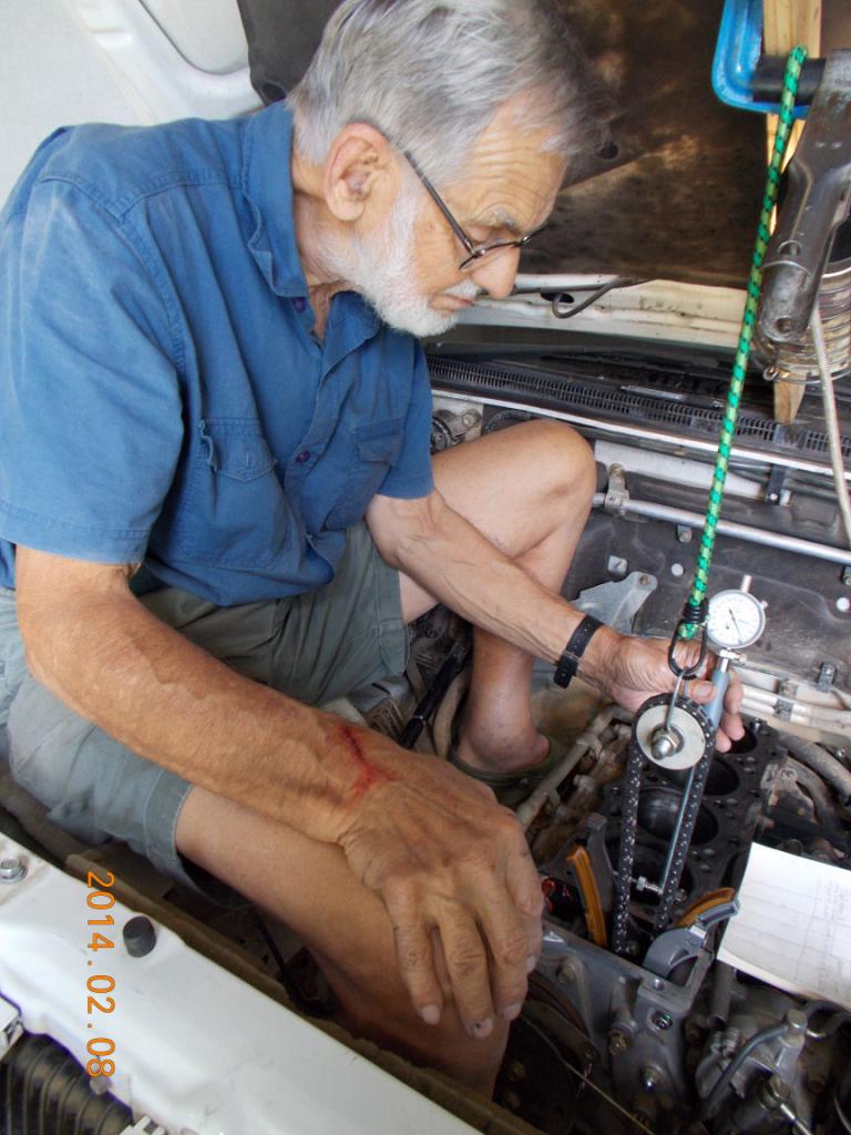 I set my Mitutoyo Cylinder Gauge to read zero at a diameter of 98.50 mm. This was done with my Mitutoyo 100 mm external micrometer set to that size --- see Photo 1. The table therefore records deviations from 98.50 mm, positive values indicating wear and negative ones the opposite. The smallest graduations on the Cylinder Gauge's scale are at one micron intervals, i.e. 1 micro-meter. Photos 2 and 3 show me sitting in the engine bay and making measurements.