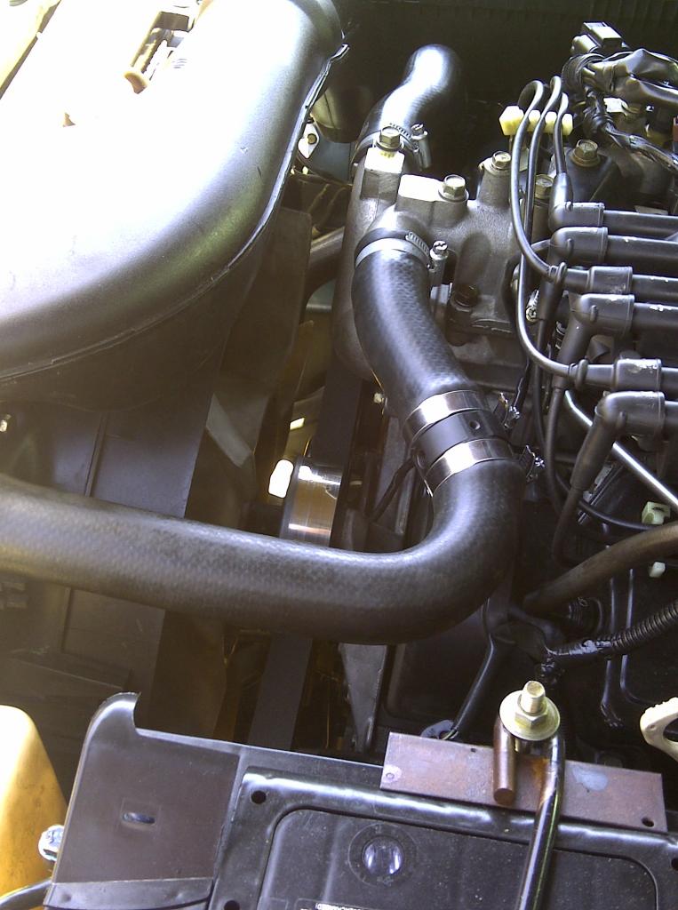 I cut the top radiator hose and fitted an inline plastic fitting that accepts the coolant temperature sender and coolant presence probe.