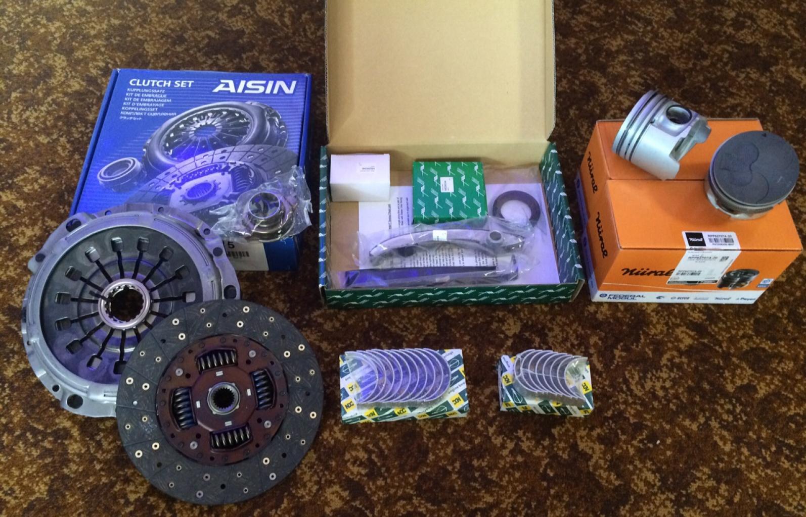 Clutch kit, timing chain kit, big end bearings, main bearings and the pistons.