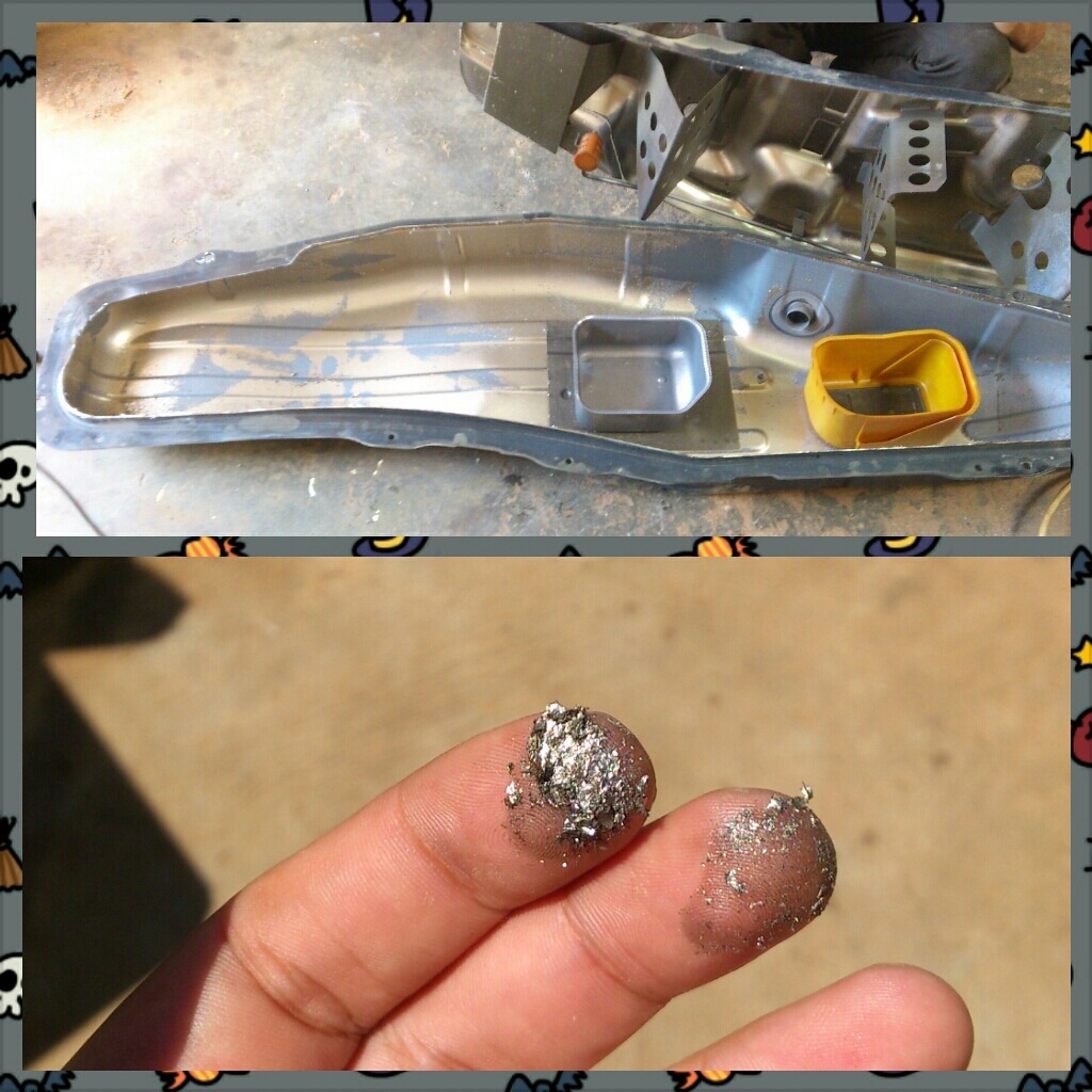 Picture shown is the glittery subtances, and now we're trying to take off all that coating which we found unsuccessful (not all of them taken off). Does anybody experience with rebuildng their fuel tank? And also what sort of coating is it?