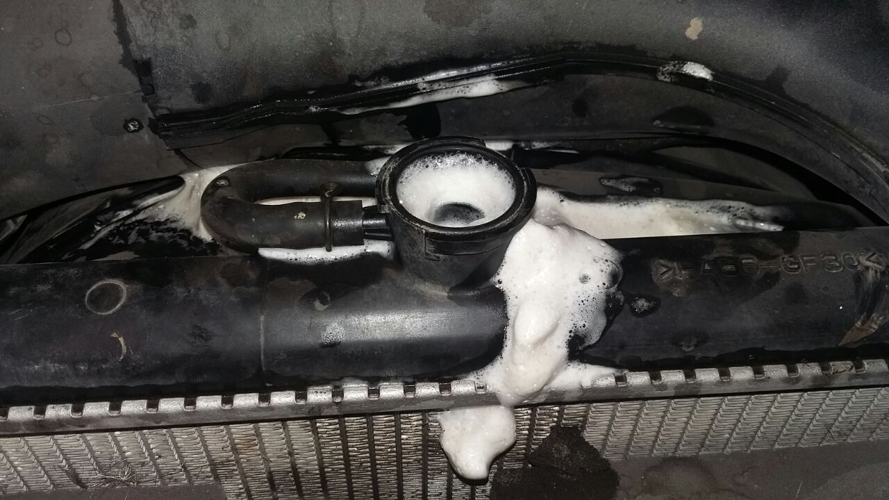 What could this be? My guess is that somehow soap water got into the radiator at the petrol station. Unfortunately the workshop manager did kept water samples and did not send it for testing.