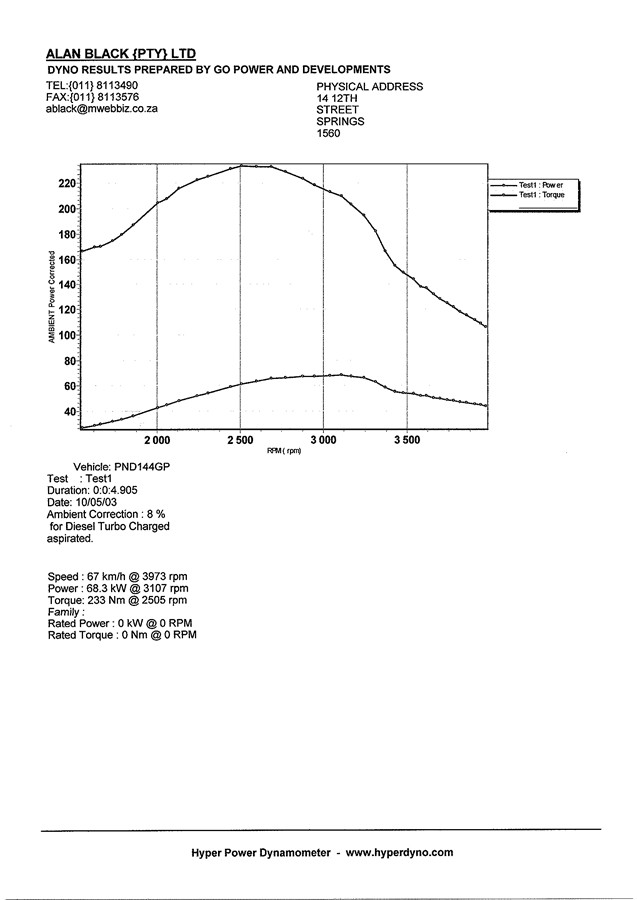 Having said all that, let's assume that the chassis dynamometer results that you posted are believable. Now the rating of the 4M41 motor (3.2 DiD) is said to be 121kW at 3800 rpm and 373 Nm at 2000 rpm. I am not sure against which standard this rating was determined, but let's assume that is a nett, engine dynamometer rating (i.e. the engine should deliver this rated power when powering all necessary ancillaries (water pump, cooling fan, etc.) and while equipped with an intake and exhaust system representative of those in the Gen 3 Pajero.