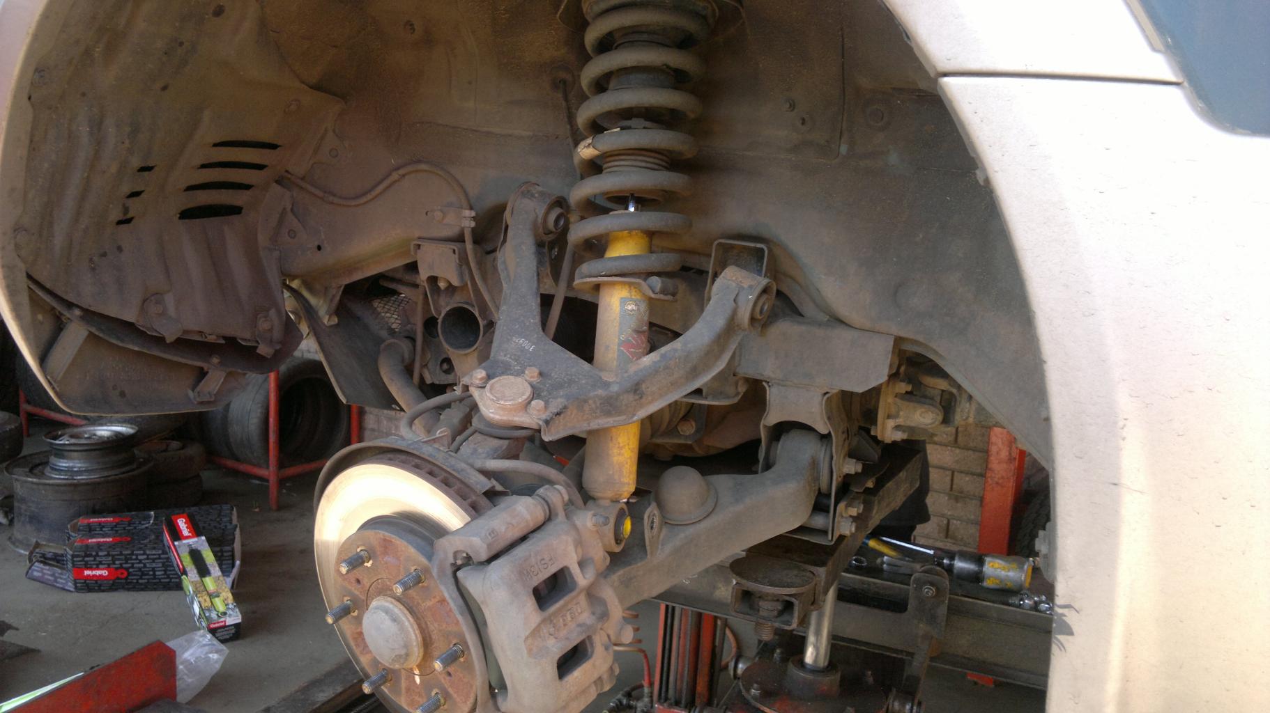 then they had to remove the bolts keeping the control arm in place to get the shock and coil out.