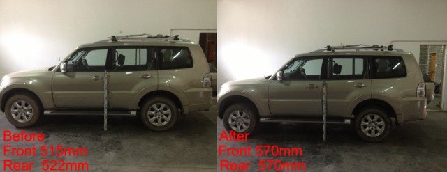 Afterwards the suspension feels almost the same except for the fact that the CG (center of gravity) has moved upwards resulting in more body roll. This is not a problem for me, but it can be dangerous at excessively high speeds. THIS IS A OFF-ROAD USE MODIFICATION! In standard trim the vehicle is perfectly balanced for road use and the CG is low enough to prevent high speed roll overs.