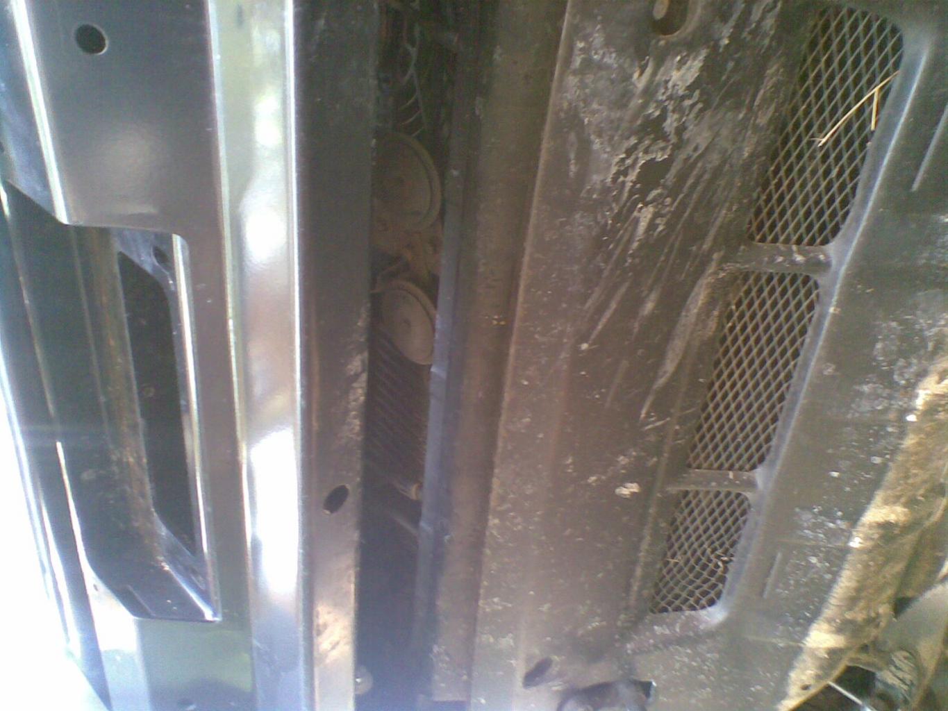 Here are some more terrible quality cel-phone pics I took of the 5 slots Burnco cut into my bumper, they are unfortunately at a slight angle to the road and not square to the airflow, but I am sure they will work better once my washer bottle is moved and I clean my radiators out too.