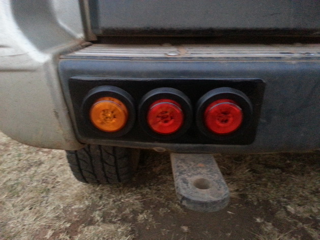 So what I did was to make a plate that fit the original lights and installed three 60mm round LED lights that you ormally find on trucks, etc.