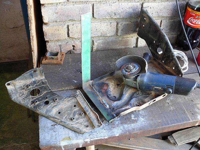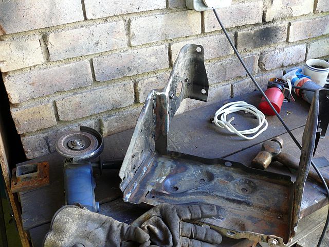 The second cut came after I had tacked the base back and used the extension as a guide to move the mounting back to the original position. The lot was welded and cleaned and then painted with 3 coats of hamerite to prevent rust.