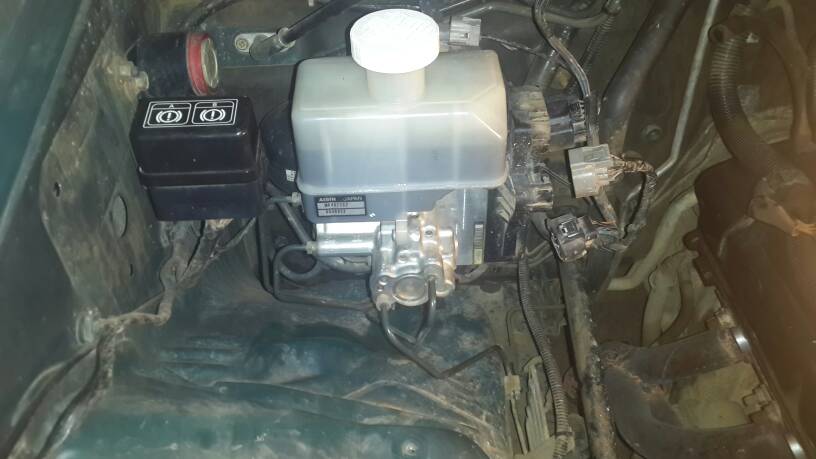 There is a very specific step by step protocol to follow to bleed the HBB (hydraulic brake booster) and brake lines, as I had removed it completely and drained all the brake fluid to check out the master cylinder seals. It took me 2 liters of brake fluid and 2 hours to bleed the system (I has to remove the wheels to access the bleed nipple). All that I couldn't do was manually cycle the ABS system to clear the the air out in that section with the MUT II scantool, so all I did was find a patch of gravel and do an emergency stop to activate and thus cycle the ABS.