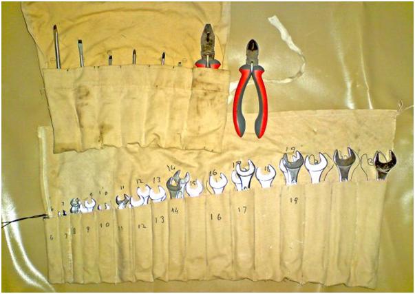 The above mentioned tools are what I would consider as being the bare minimum, I have a canvas roll that all fits in to as permanent residents in my Pajero. Tip Take the weef’s sewing machine and sew a canvas or fabric rollup caddy for the tools, it not only keeps everything together and stops it from rattling but also enables you to spot anything missing when you have finished working.