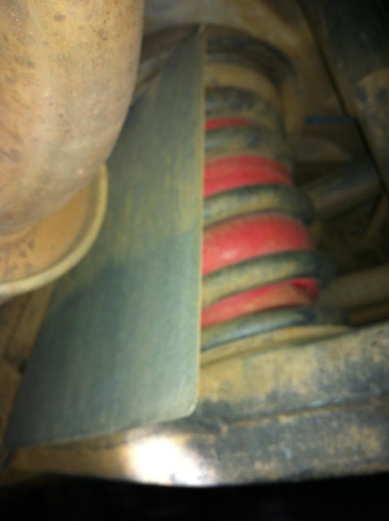 One thing that I find a bit strange, is that the red spacer, which goes at the bottom, is going to sit against the spring "perch" on the lower suspension arm. The coil spring goes around this "perch". The "perch" is not 100% level (it is higher towards the outside of the car. The spacer is also a bit flexible - maybe due to the non-level perch?