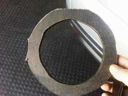 This red circle is where the rubber spacer fits around, make sure it is cut correct ti fit around the cone tight, and that the surrounding "lip" will still keep the coil in place, Good luck