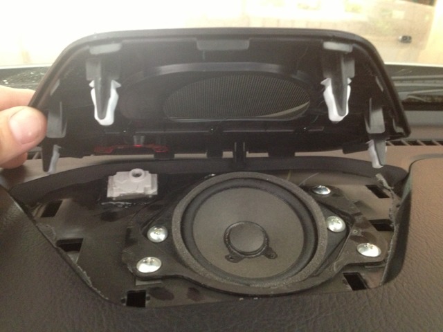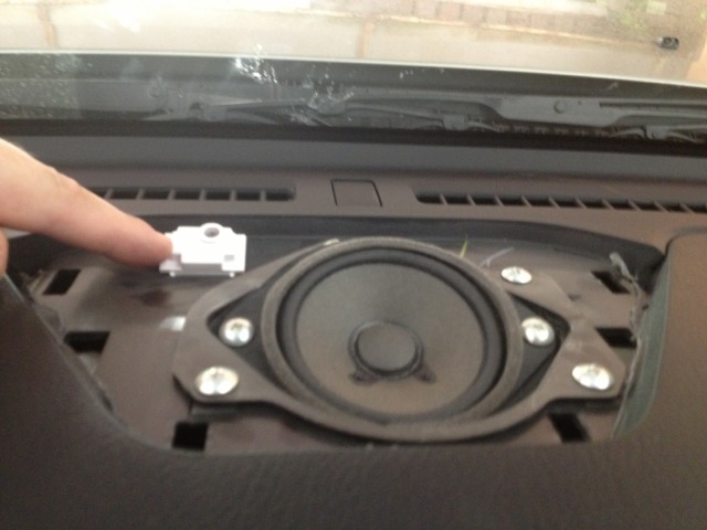 Since the rattle originated from somewhere near the centre speaker I decided to start there. I will have to remove the speaker in any case to get to the dash mounting bracket underneath. So I took the speaker cover off and there it was, the cause of the rattle!