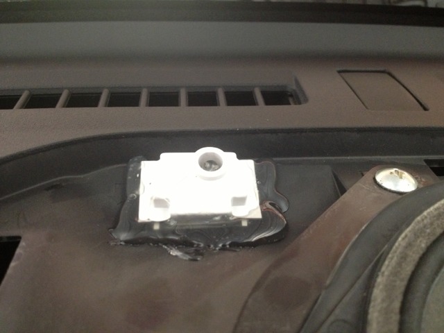The red LED alarm light mounted next to the speaker sits inside a ABS plastic bracket mounted in the steel dash frame. The speaker cover holds the LED assembly tight against the steel plate, but all that shaking worked it loose and it starter to rattle!