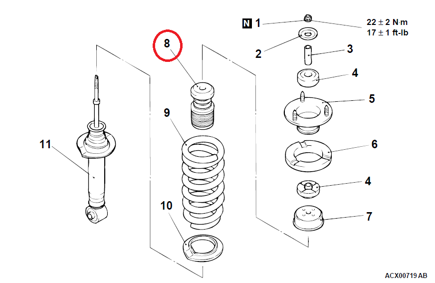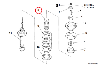I had the same shocks installed today, but I am almost certain they left out number 8 as you've pointed out. Now, I have a knock sound at the front passenger side if you drive over an uneven road surface. I took off the wheel and checked everyhting i could think of, but found nothing.